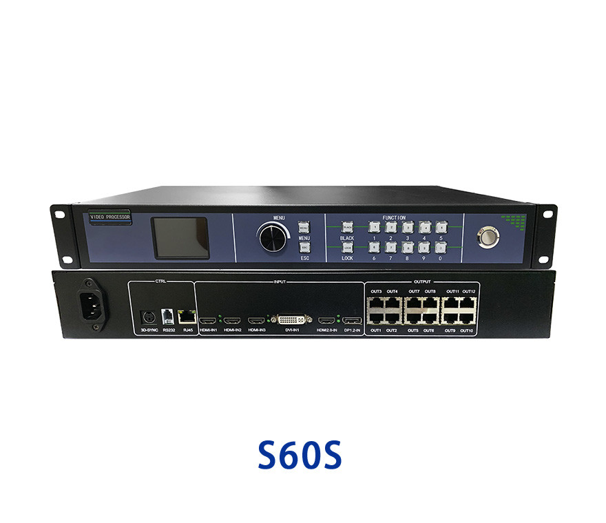 S60S multi-screen video splicing and processing all-in-one is a professional-grade LED display control device; it has powerful video signal receiving, splicing and processing capabilities, and can drive a maximum of 6.5 million pixel LED screen, supporting 3 HDMI and 1 DVI digital signal, seamless switching between multiple signals; any splicing, supporting up to 8 screens at the same time.
